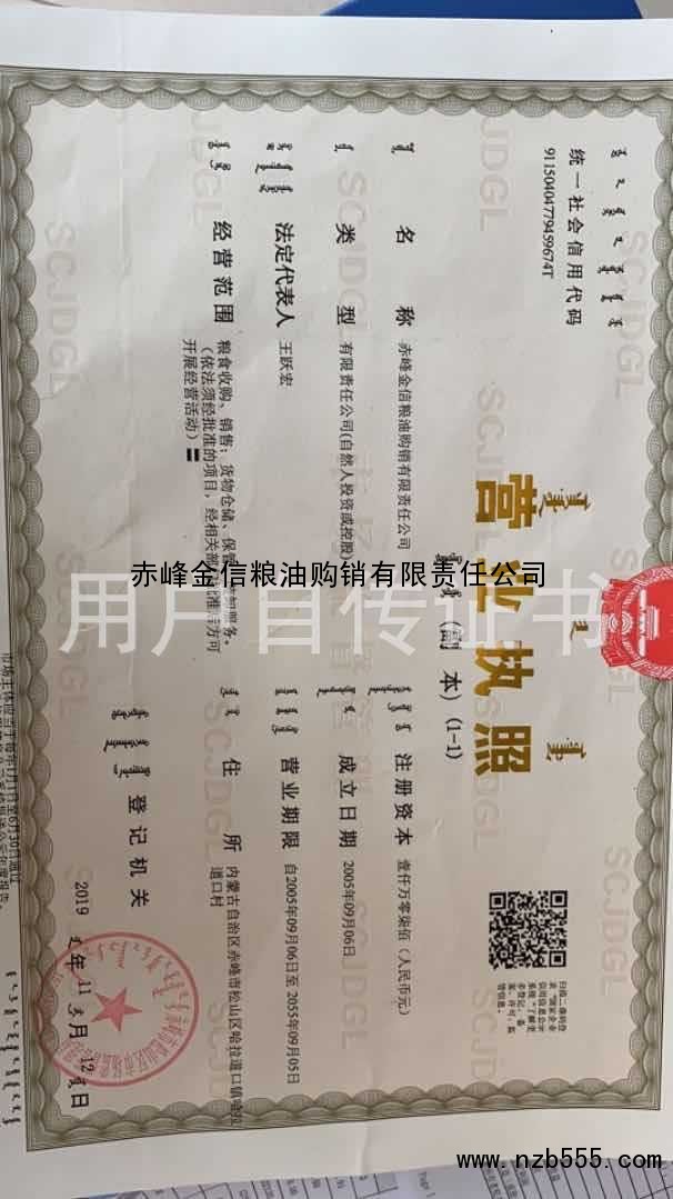 | 發(fā)證機(jī)構(gòu): | 赤峰市市場(chǎng)監(jiān)督管理局 | 發(fā)證時(shí)間 : | 2019-11-12 |