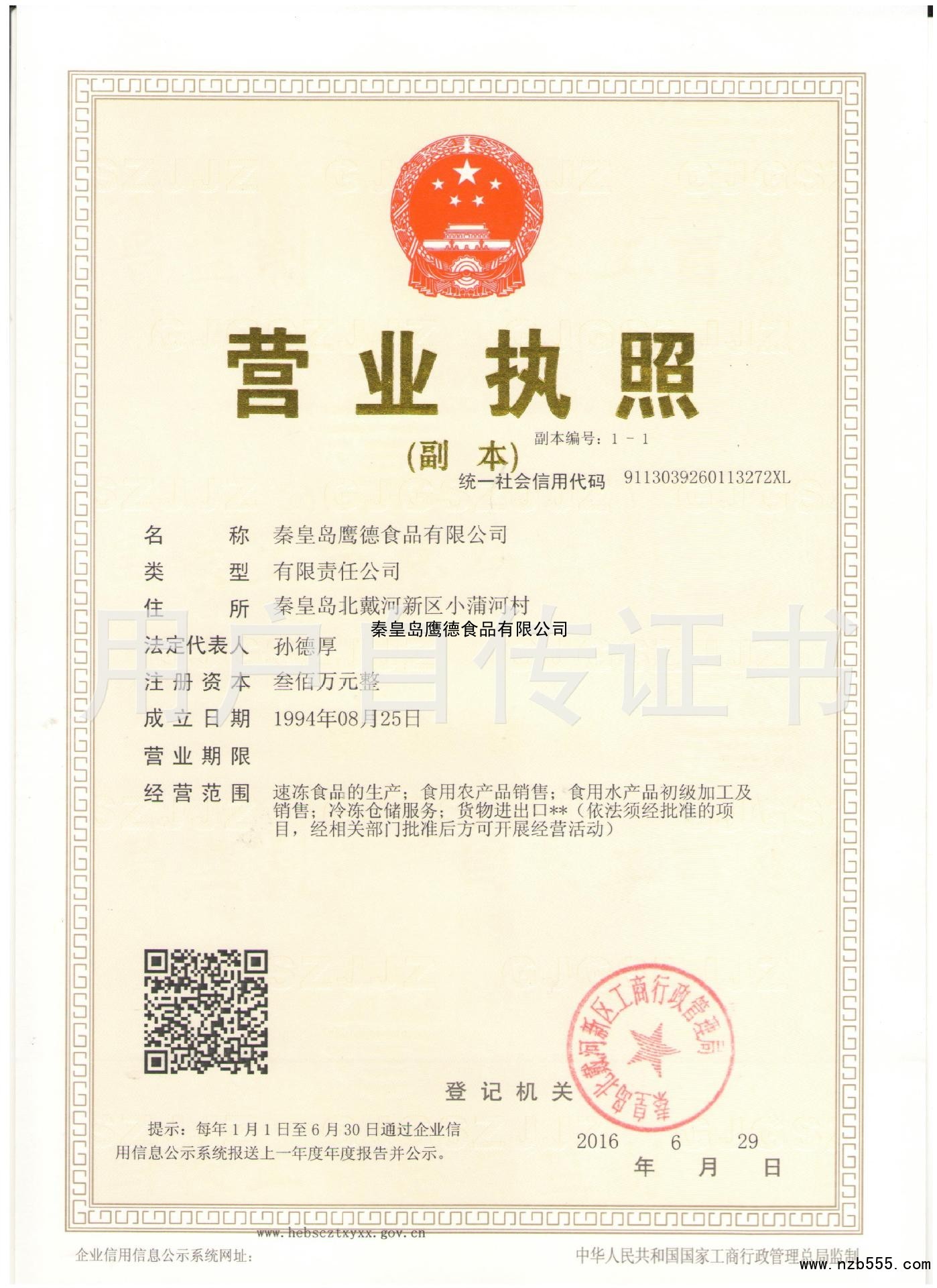 首頁 > 榮譽(yù)資質(zhì) > 秦皇島鷹德食品有限公司