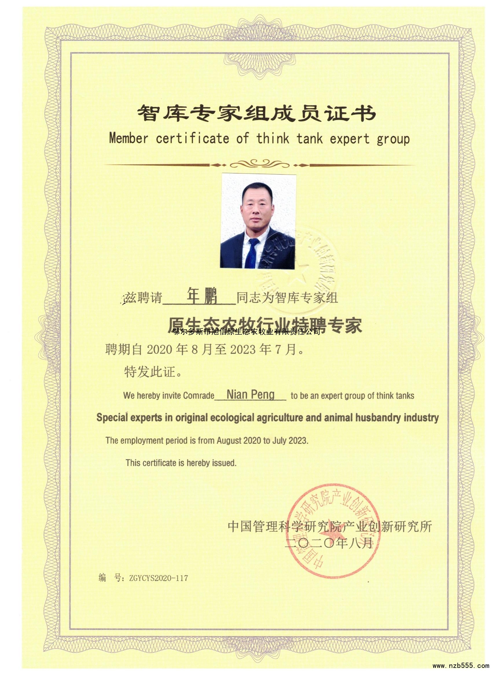 智庫專家組成員證書