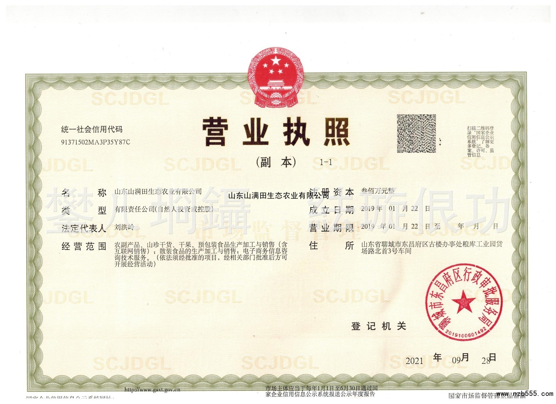 山東山滿田生態農業有限公司
