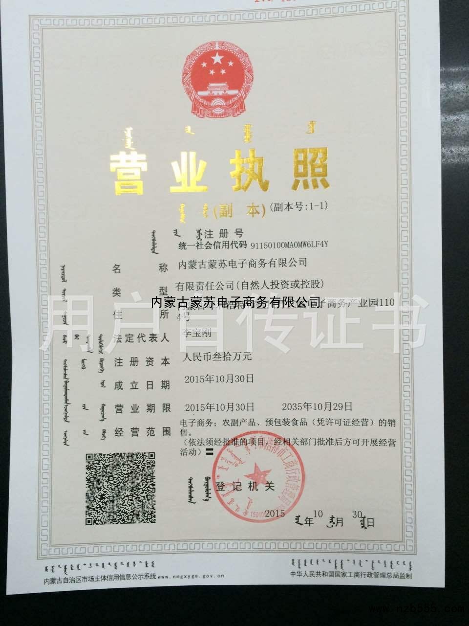 | 發(fā)證機(jī)構(gòu): | 呼和浩特市工商行政管理局 | 發(fā)證時(shí)間 : | 2015-10-30 |