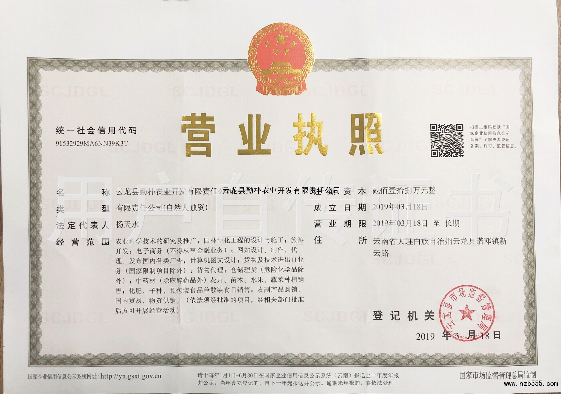 云龍縣勤樸農業開發有限責任公司