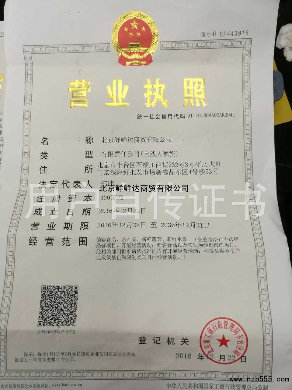 銷售食品、水產品、新鮮蔬菜、新鮮水果。(企業依法自主選擇經營項目,開展經營活...