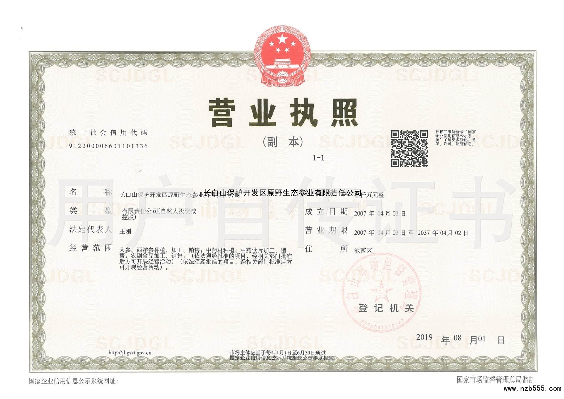 長白山保護開發區原野生態參業有限責任公司