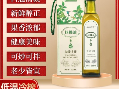 廠家批發 物理冷榨核桃油 食用油送嬰幼兒輔食譜500ml瓶子可貼牌
