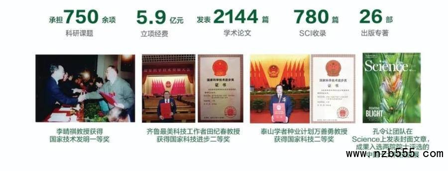 近年來,學院累計審定小麥、玉米、花生、棉花等新品種70多個,獲新品種保護權45項。其中小麥新品種山農30和山農29在2019年、“山農28號”在2020年連續刷新全國冬小麥單產最高紀錄;學院每年選派200余人次的專家教授深入農業生產一線。