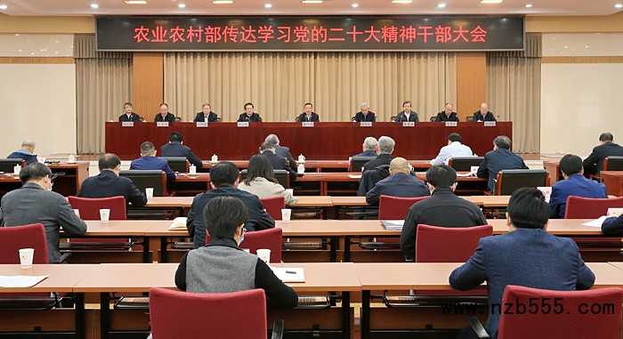 會議要求,部系統各級黨組織要把學習宣傳貫徹二十大精神,作為當前和今后一個時期的首要政治任務,迅速組織傳達學習,通過理論中心組、專家輔導、交流研討等形式,組織開展具有三農特色、形式豐富多樣的學習交流活動,分期分批、分層分級開展培訓輪訓,面向農村基層、農民群眾、三農系統開展宣傳宣講,掀起學習宣傳貫徹的熱潮,要引導黨員干部原原本本學懂、全面系統弄通、不折不扣做實,推動黨的二十大精神在三農系統落實落地、扎根生根。要把學習貫徹二十大精神同謀劃明年和今后一個時期三農工作緊密結合起來,組織開展全局性、關鍵性、戰略性重大問題研究。當前要毫不放松抓好秋收,保質保量完成秋種,高質量完成高標準農田建設任務,切實保障“菜籃子”產品穩定供給,扎實做好安全生產和新冠肺炎疫情防控工作。