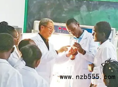 中國農學專家(右四)在實驗室指導埃格頓大學學生試驗。埃格頓大學孔子學院供圖