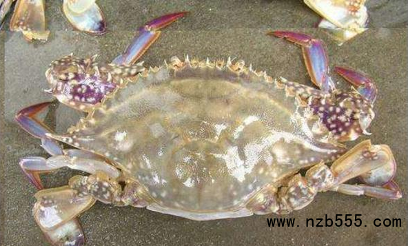 (1)梭子蟹,有些地方俗稱“白蟹”。因頭胸甲呈梭子形,故名梭子。甲殼的中央有三個突起,所以又稱“三疣梭子蟹”,屬于節肢動物。雄性臍尖而光滑,螯長大,殼面帶青色;雌性臍圓有絨毛,殼面呈赭色,或有斑點。梭子蟹肉肥味美,有較高的營養價值和經濟價值,且適宜于海水暫養增肥。頭胸甲梭形,寬幾乎為長的2倍;頭胸甲表面覆蓋有細小的顆粒,具2條顆粒橫向隆堤及3個疣狀突起;額具2只銳齒;前側緣具9只銳齒,末齒長刺狀,向外突出。螯腳粗壯,長度較頭胸甲寬長;長節棱柱形,雄性長節較修長,前緣具4銳棘。