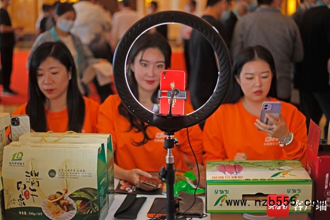 網(wǎng)紅在直播東方美味產(chǎn)品。記者汪承賢攝