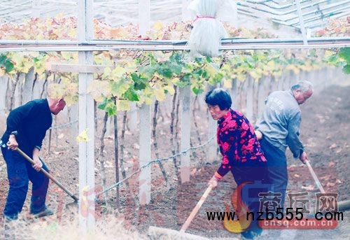 12月19日,夏邑縣北嶺鎮孫后寨村村民在葡萄架下松土保墑,加強冬季管理,爭取明年葡萄豐產豐收。本報記者 韓 豐 攝