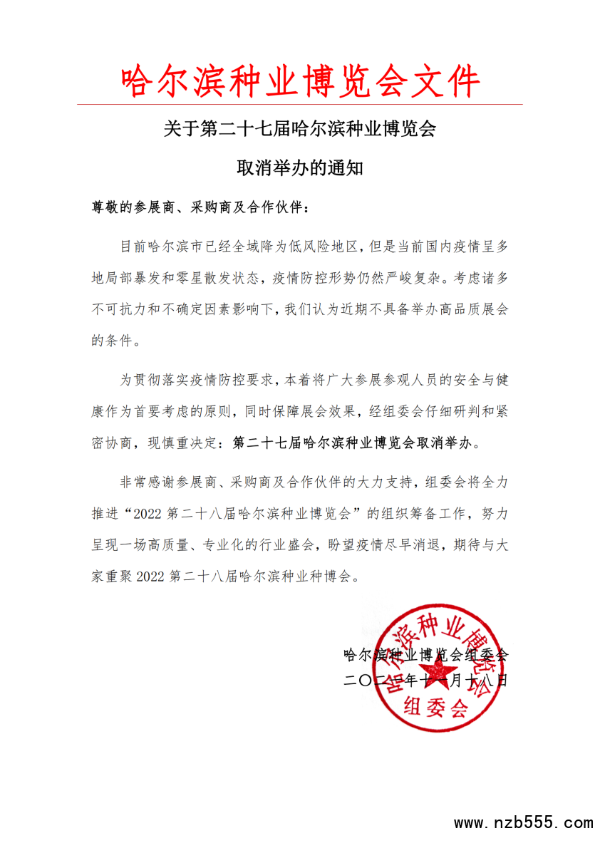 重大通知!第27屆哈爾濱種業(yè)博覽會取消舉辦