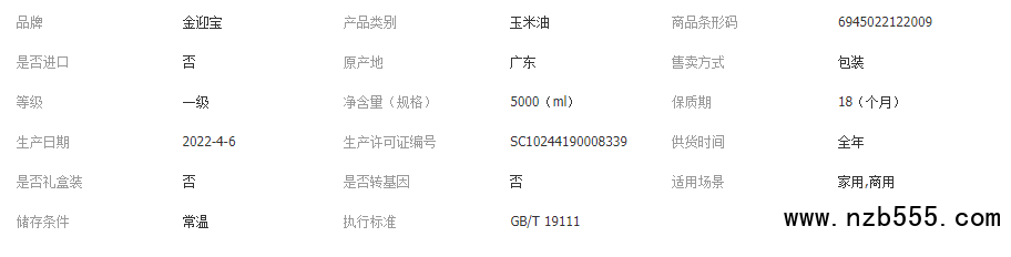 金迎寶純正玉米胚芽油