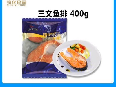 銘億冷凍水產(chǎn)三文魚排400g餐廳酒店供應廠家批發(fā)海鮮智利進口