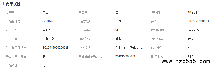 有機(jī)嬰幼兒強(qiáng)化鈣鐵鋅米粉225g寶寶營(yíng)養(yǎng)水果肉蔬米粉