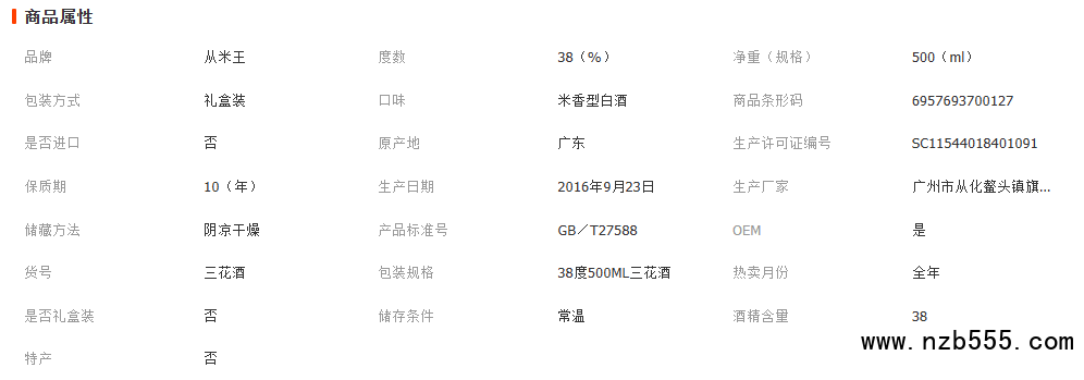 從米王牌從化三花酒38